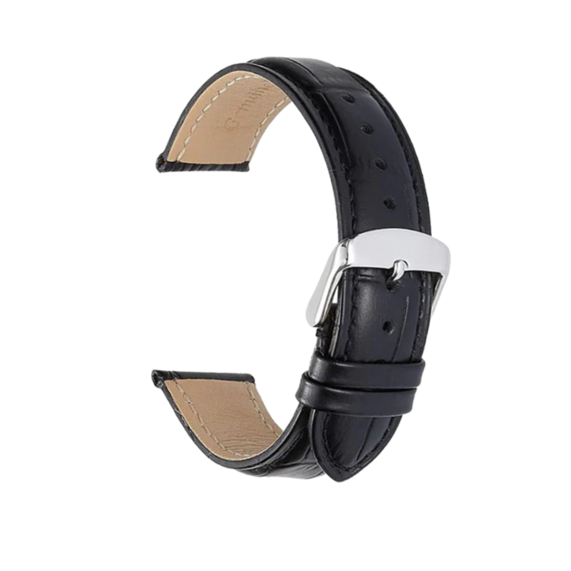 Nubuck leather lining. Hypo allergenic nickel free buckle in silver color is installed. One of our finest leather and most popular watch bands. These deBeer top grain leather watch bands can be easily integrated into anyone’s wardrobe for a subtle and timeless look.            22mm wide where it connects to the watch The 22mm deBeer Coach Leather Watch Strap is made with genuine Italian top grain calf skin leather with a smooth finish. The watch band has a semi-glossy shine and hand-stitched edges, these replacement watch bands offer an aesthetically beautiful and high-quality addition to your watch, whether you wear the band everyday or only on occasion.deBeer is the name you trust for fine replacement watch bands. deBeer has been supplying fine watch straps to high end watch and jewelry stores for over 35 years. Black Watch strap is 3.5mm thick - 6.75" total length, (excluding the buckle). The long side of the band is 4.00" long and the short side is 2.75" longCompatible with any traditional watch or smart watch that uses a 22mm watch band. New spring bars are included. Measure the width of your watch where the band connects to the watch. You can also find the width specifications for most watches by searching online.