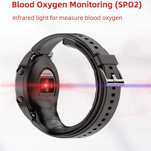 Our smartwatch comes with a (photoplethysmography) PPG sensor that non-invasively monitor the amount of oxygen in your blood by shining light through your skin and measuring the amount of light that is absorbed.