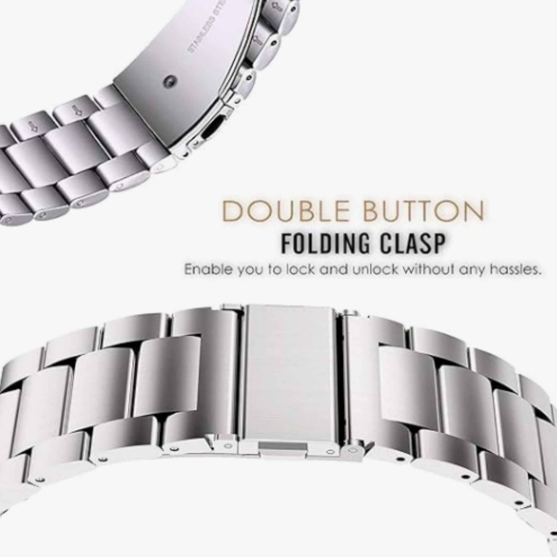 TRENDY, STYLISH AND FASHIONABLE: This Watch Strap band is made of high-quality Stainless Steel with a suave Glossy finish and comes with a Double folding Butterfly clasp which is fashionable, luxurious and gives you a clean and professional look for all occasions, be it with your daily wear, business formals or your evening wear.